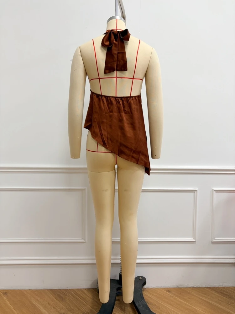 Features: Camisole, silk satin camisole, irregular hem silk top, sexy backless satin camisole, suitable for parties.