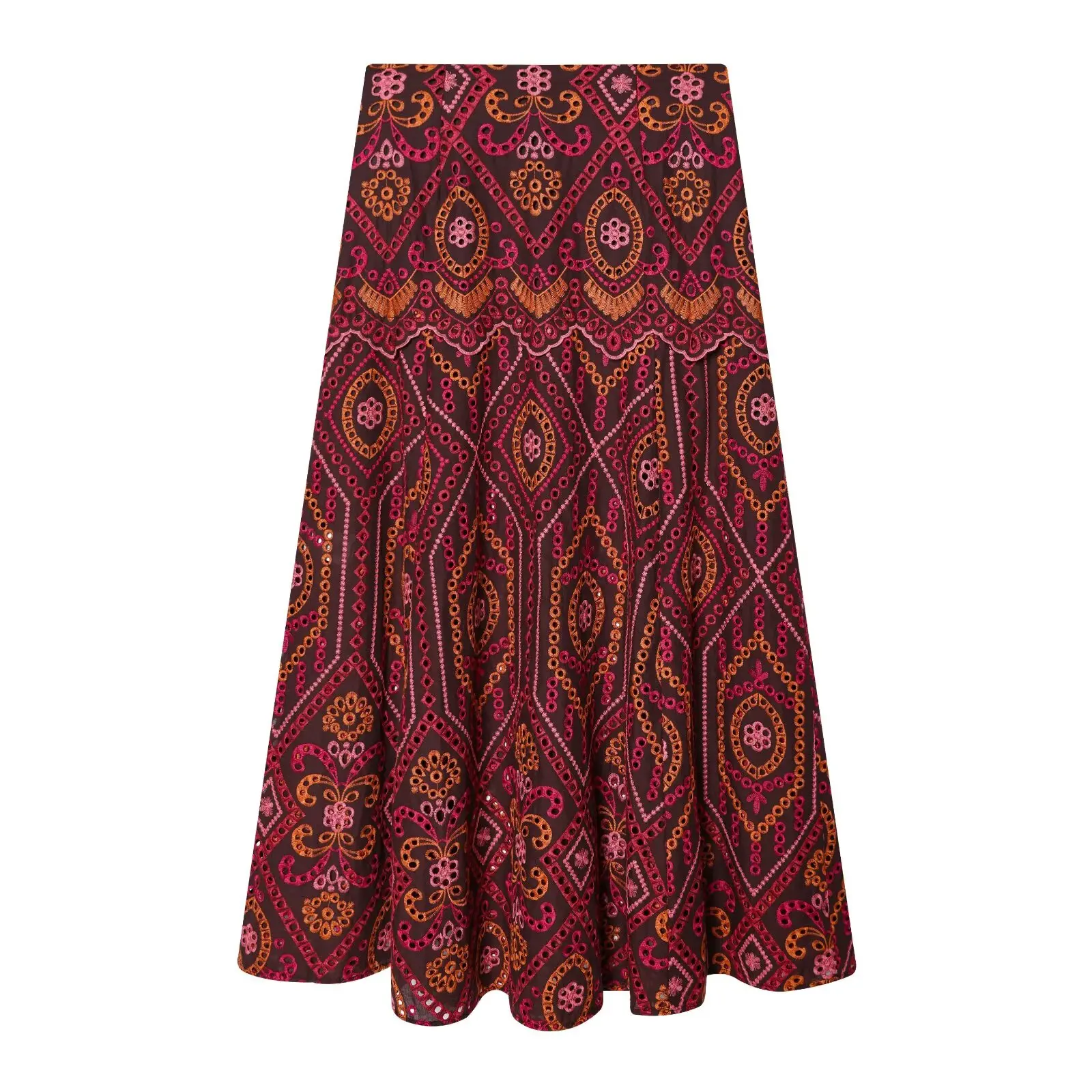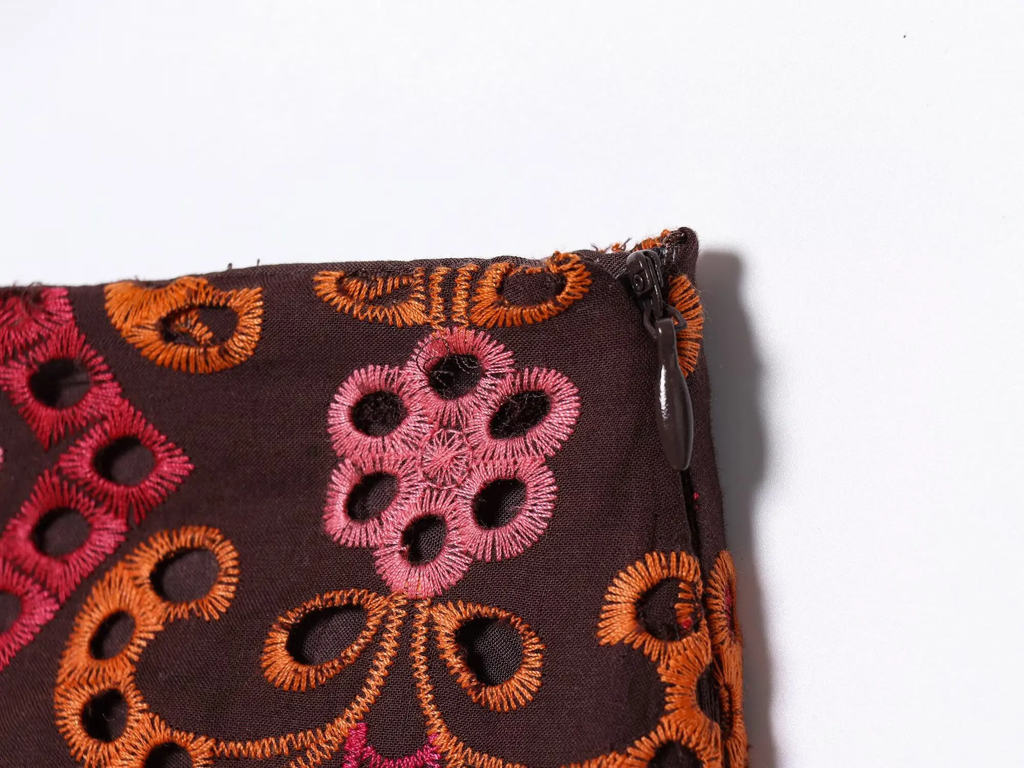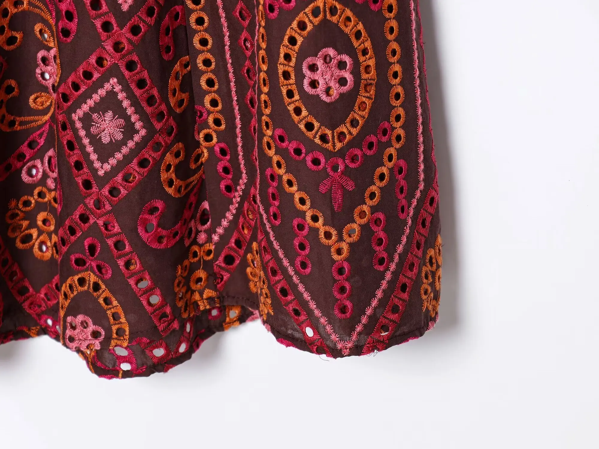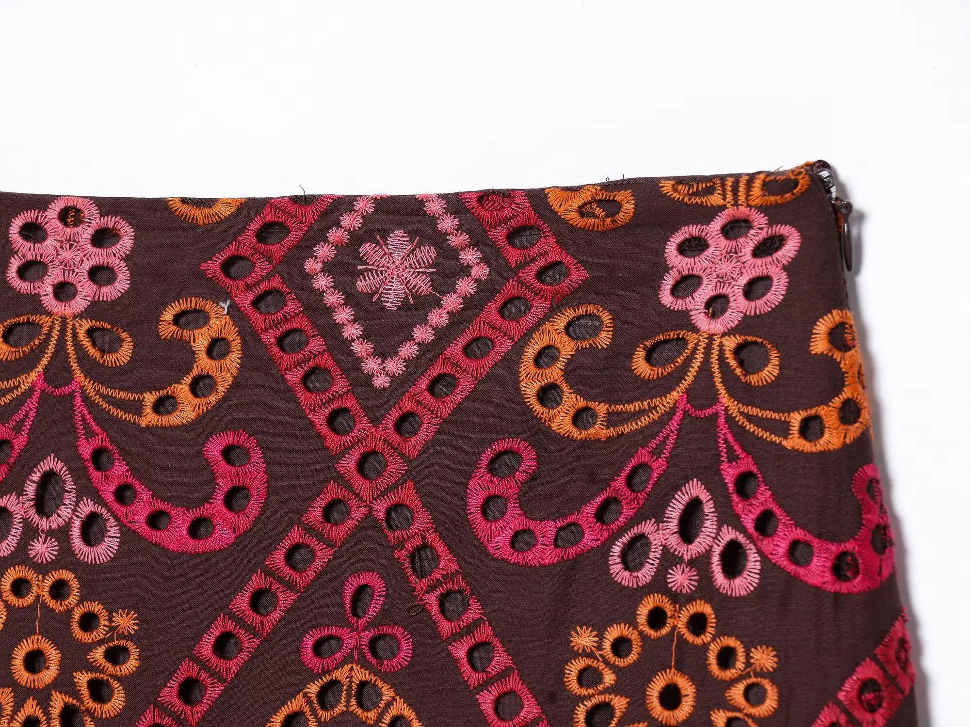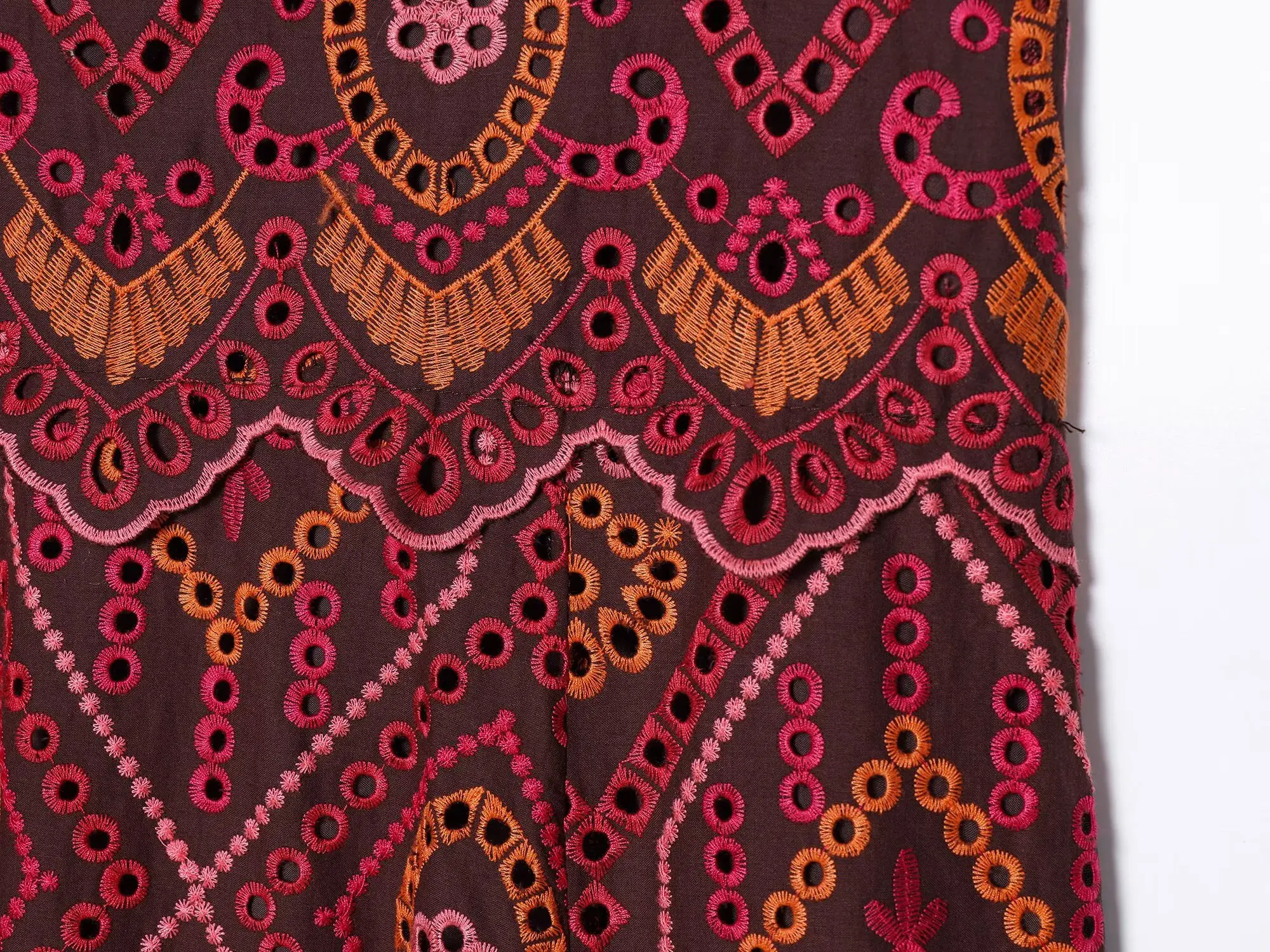 HH Woman Fashion O-Neck Embroidery Hollow Sleeveless Short Tops+Side Zipper Pleated Midi Skirt Casual Printed Spring 2 Piece Set
