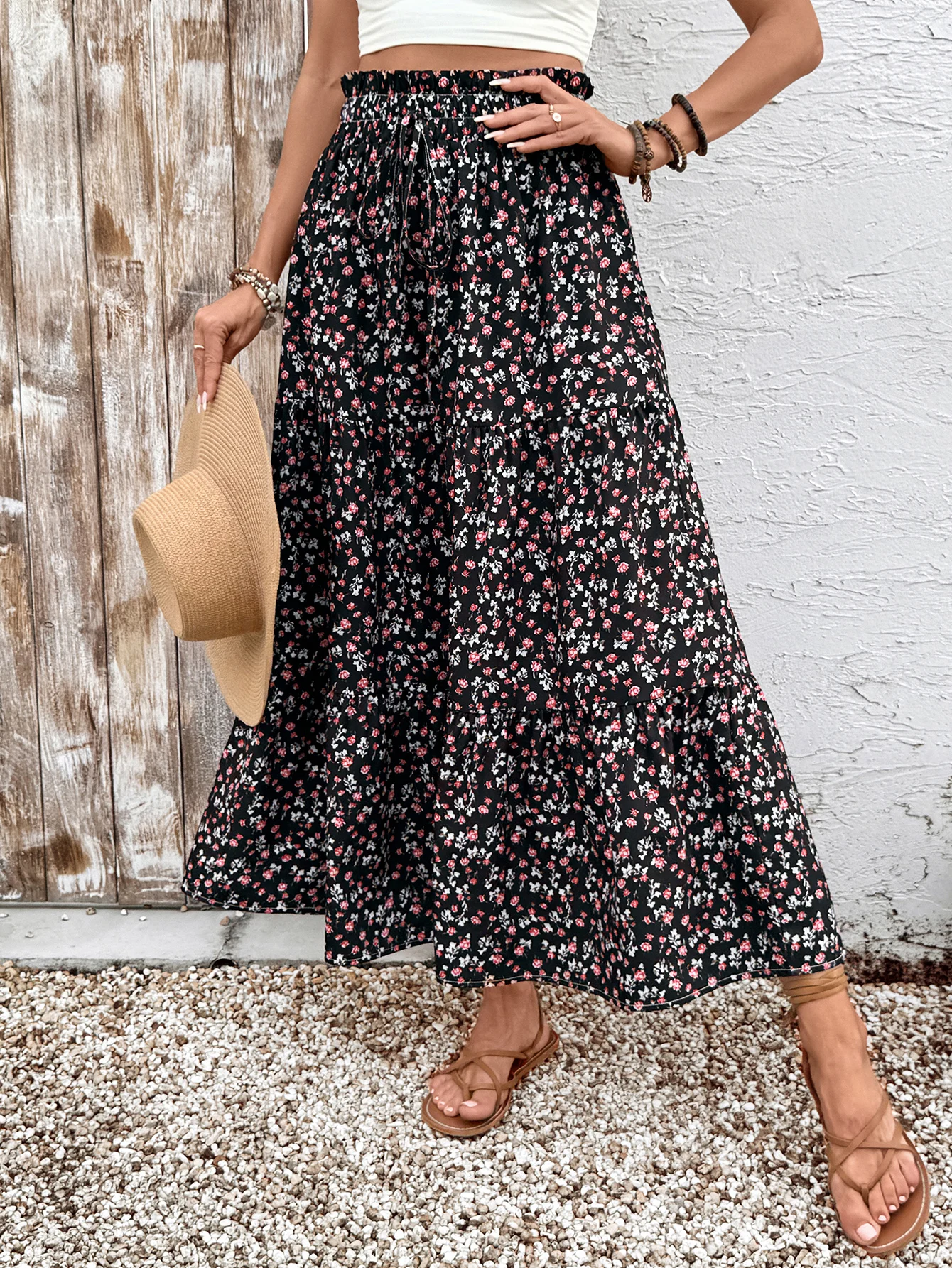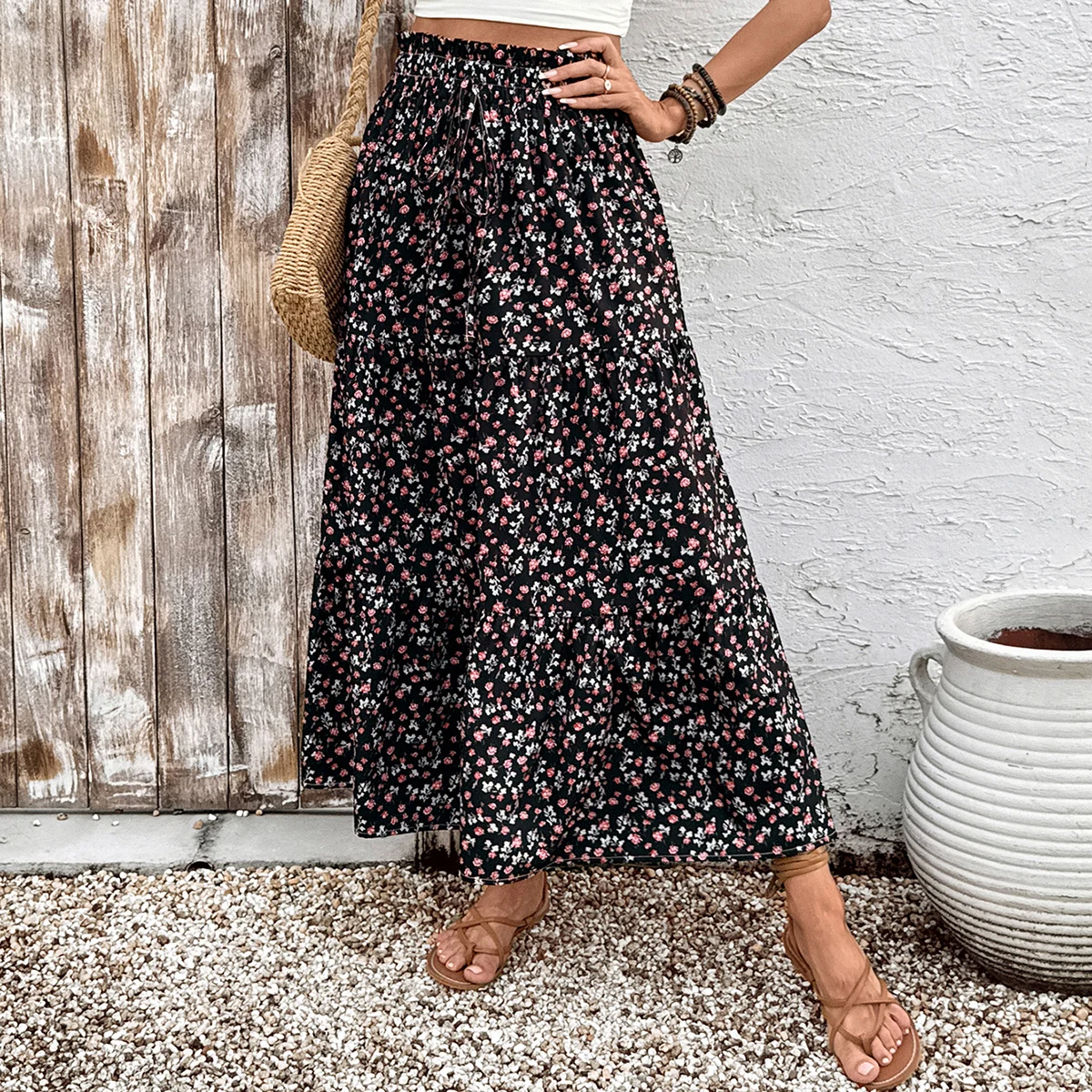 Women's High Waisted Slimming Midi Skirt Ditsy Floral a Line Skirt with Elastic Waist Perfect for Boho Style Outfits